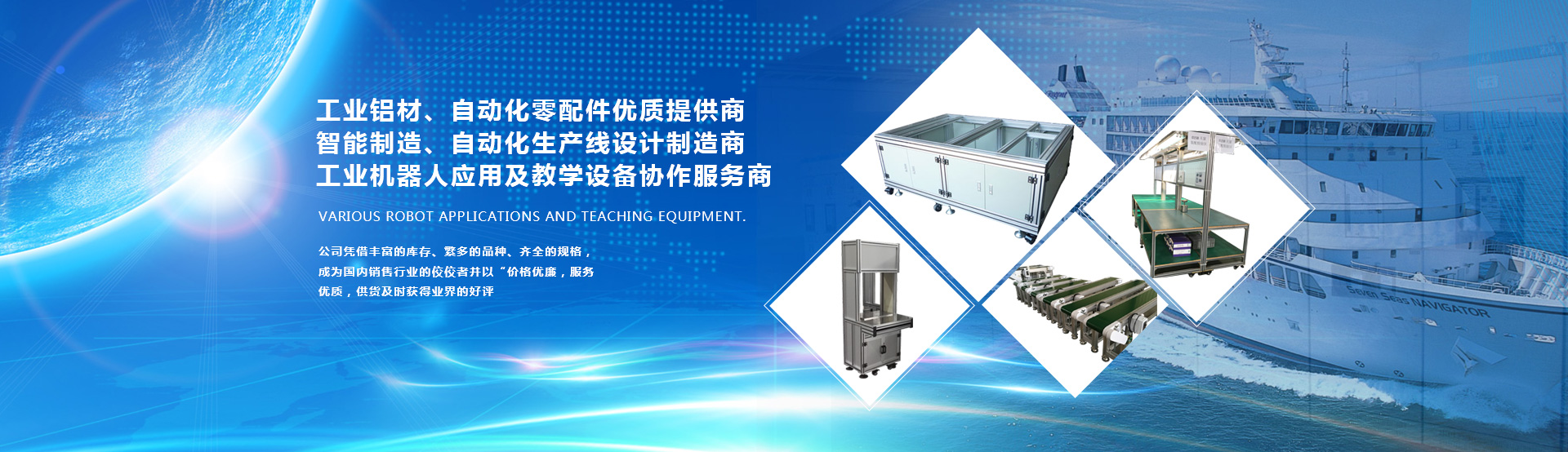 各種機器人應(yīng)用及教學(xué)設(shè)備。為工業(yè)生產(chǎn)及工業(yè)自動化提供一站式配套服務(wù),我們的產(chǎn)品有:1、國標(biāo),歐標(biāo)全系列工業(yè)鋁型材,